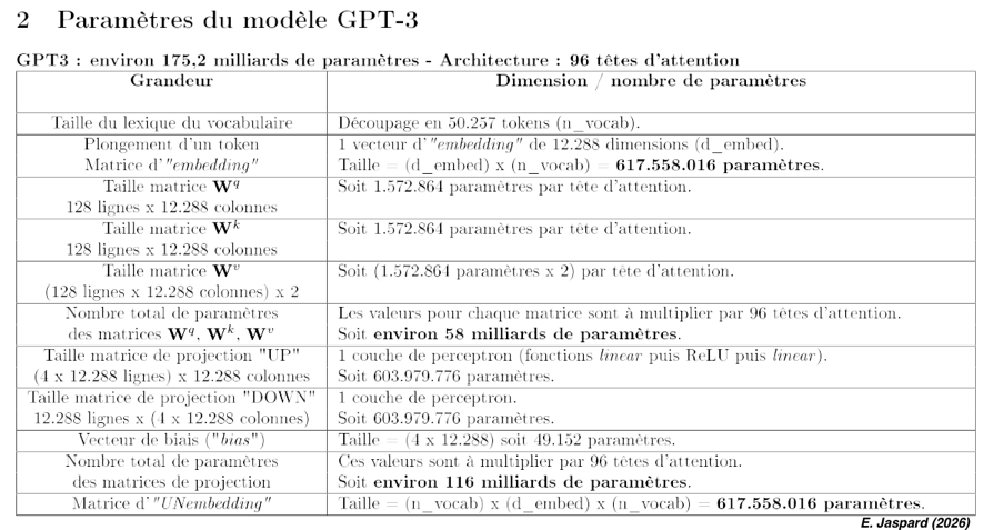 b. Puissance de calculs nécessaire à l'entraînement des LLM et coûts de l'entraînement des LLM Un LLM est entraîné sur un système composé de milliers de processeurs graphiques ("Graphics Processing Unit" - GPU) capable de traiter de nombreuses tâches en parallèle. |